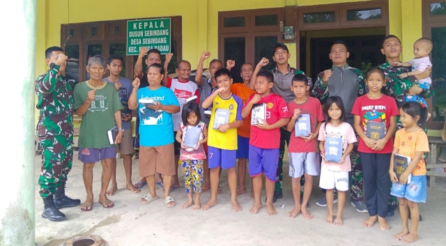 Kapuas Hulu- Sebagai wujud toleransyi beragama di perbatasan, Satgas Pamtas RI – Malaysia Yonarmed 10/ Bradjamusti Kostrad membagikan bantuan alkitab dari Pangkostrad, Letjen TNI Muhammad Saleh Mustafa untuk masyarakat di perbatasan RI – Malaysia, Desa Badau, Kabupaten Kapuas Hulu, Kalbar. Sabtu (03/02/2024).
