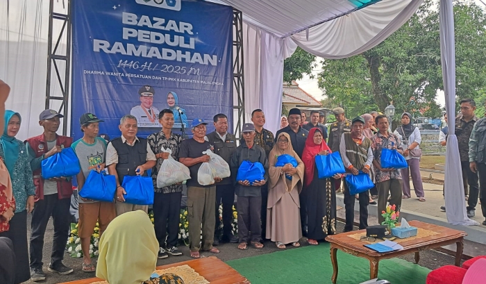 Tim Penggerak PKK dan Dharma Wanita Persatuan Kabupaten Majalengka, bersama Tim Pengendalian Inflasi Daerah (TPID), menggelar Bazar Ramadhan 1446 H/2025 M di Taman Bagja Raharja Kasungka. Acara ini bertujuan untuk membantu masyarakat mendapatkan kebutuhan pokok dengan harga terjangkau.