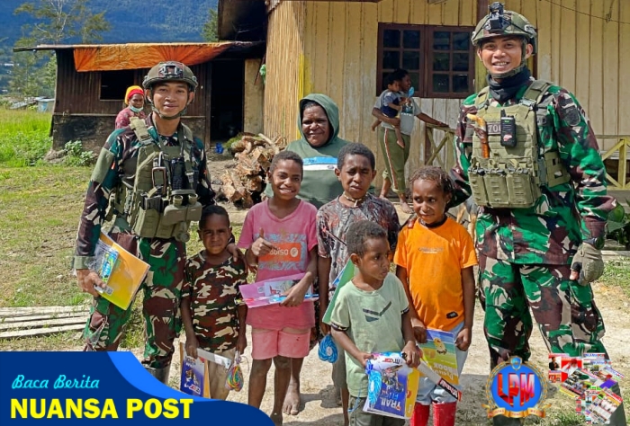 [ GOME PAPUA ] – Akses pendidikan dan buku bacaan masih menjadi tantangan besar di beberapa wilayah terpencil Papua. Namun, kehadiran Satgas TNI melalui Satgas Yonif 700 di Distrik Gome sedikit meringankan beban tersebut. Pada hari Rabu, 26 Maret 2025, anggota Satgas TNI dari Yonif 700/WYC membagikan lebih dari 20 buku gambar dan alat tulis kepada anak-anak di Kampung Gome, sebuah kampung yang hanya dapat diakses melalui jalur udara
