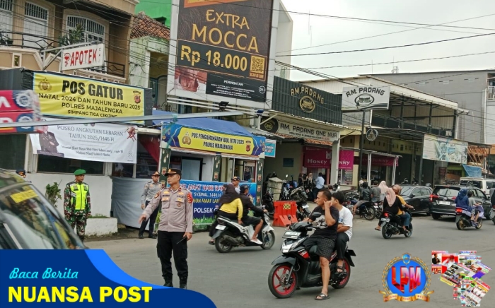 Padal Pospam Simpang Tiga Cikijing Ops Ketupat Lodaya 2025 IPDA Lifda Sugilar beserta Anggota melaksanakan pengaturan arus lalu lintas di kawasan Simpang Tiga Cikijing Kabupaten Majalengka, Rabu (26/03/2025).