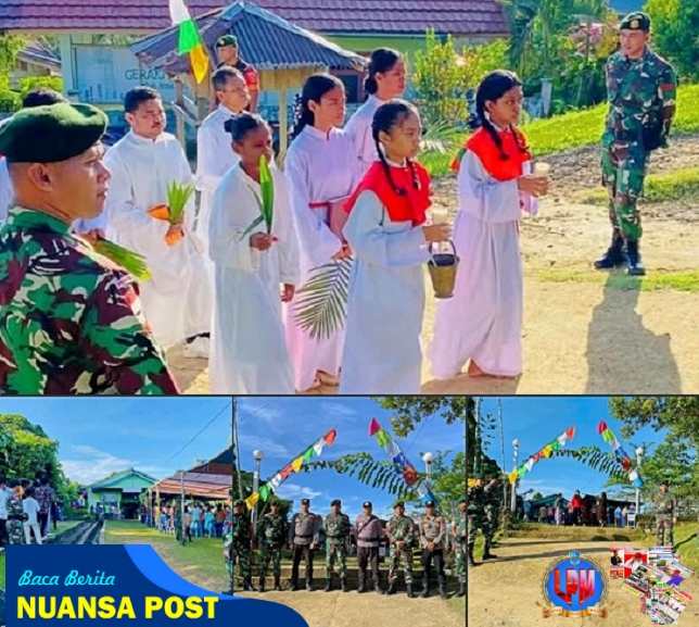 Komandan Satgas Pamtas Yonarmed 11 Kostrad, Letkol Arm Gde Adhy Surya Mahendra, menyampaikan bahwa keterlibatan personelnya dalam perayaan Minggu Palma merupakan bentuk nyata dari pendekatan komunikasi sosial yang mengedepankan nilai-nilai toleransi dan kebersamaan.