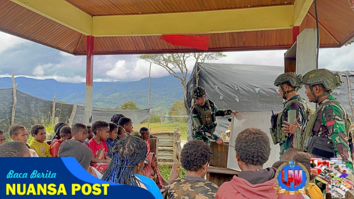 Kegiatan belajar di Pos Eromaga ini bukan sekadar rutinitas—ia adalah denyut harapan di tengah terpencilnya akses. Dalam dekapan alam Pegunungan Papua yang megah, para prajurit dengan rompi dan helm tetap, mengajar dengan hati, menyambung harapan dari generasi ke generasi.
