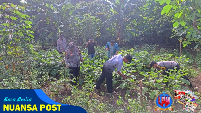 Polsek Wilangan melalui Kanit Binmas Aiptu Bambang Dwi S. memanen tanaman sayuran berupa terong di halaman kantor Polsek dan membagikannya kepada warga sekitar, salah satunya kepada Ibu Tutik yang tinggal di belakang Mapolsek, Minggu(13/4/2025).