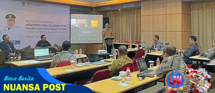 Sekretaris Daerah (Sekda) Kabupaten Karawang H. Asep Aang Rahmatullah, S.STP., M.P., membuka kegiatan asesmen dalam rangka uji kompetensi bagi Pejabat Pimpinan Tinggi (PPT) Pratama di Brits Hotel Karawang, Selasa (15/4/2025).
