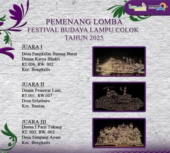 Keberhasilan ini merupakan buah dari kerja keras dan kekompakan para pemuda desa dalam melestarikan budaya tradisional lampu colok yang menjadi warisan budaya Melayu di Kabupaten Bengkalis.
