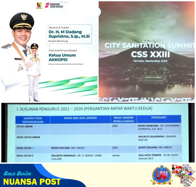 “AKKOPSI akan menjadi mitra strategis pemerintah pusat dalam mencapai target sanitasi. Kami akan menyelaraskan program-program sanitasi di daerah dengan kebijakan nasional, serta mendorong inovasi dan pemanfaatan teknologi,” tambah Kang DS. *** (RIEZCKY)