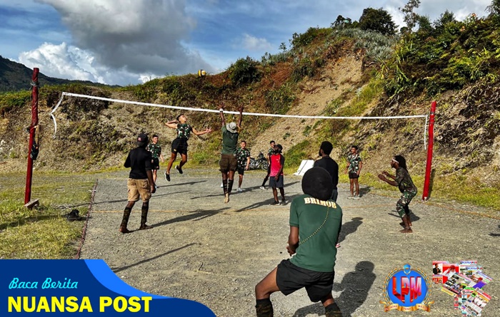 Dalam rangka menjalin kekompakan antara personel Satgas dan masyarakat kampung Pintu Angin, Satgas Yonif 715/Mtl Pos Pintu Angin ajak masyarakat olahraga bersama untuk tetap menjaga kebugaran jasmani seluruh personel saat melaksanakan tugas di Puncak Jaya, Sabtu (10/05/2025).
