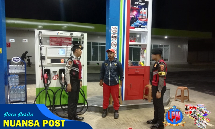 CIAMIS ~ Personel Satuan Samapta Polres Ciamis Polda Jabar mendatangi kantor pelayanan publik dan objek vital dalam rangka cipta kondisi antisipasi gangguan kamtibmas. Patroli secara humanis kali ini dengan menyambangi SPBU Benteng, Kelurahan Benteng, Kecamatan Ciamis, Kabupaten Ciamis, Jawa Barat, Selasa (10/6/2025), dini hari.