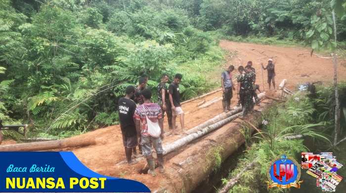 Satgas Yonif 126/KC Bersama Warga Gotong Royong Perbaiki Jembatan Menuju Kampung Wametkapa