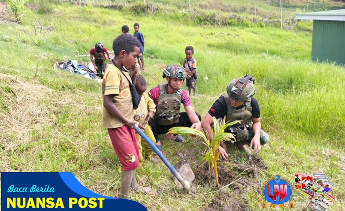 [ WULONI PAPUA, 2 Juli 2025 ] – Di balik hijaunya lembah dan pegunungan Papua yang menjulang, sebuah langkah kecil namun sarat makna dilakukan oleh prajurit Satgas Pamtas RI-PNG Yonif 700/Wira Yudha Cakti. Melalui Pos Wuloni, para prajurit bersama masyarakat Kampung Wuloni, Distrik Ilaga Utara, Kabupaten Puncak, menggelar kegiatan penanaman pohon kelapa untuk pertama kalinya di daerah tersebut.