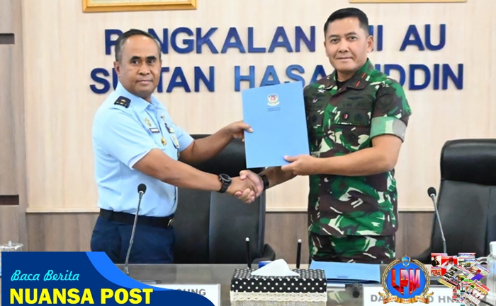 Komandan Lanud Sultan Hasanuddin Marsma TNI Arifaini Nur Dwiyanto, M.Han., mendampingi Irkoopsudnas Marsma TNI Zulfahmi, S.Sos., M.Han., selaku penanggung jawab tim memimpin exit briefing audit tim Itkoopsudnas di ruang rapat Markas Komando (Mako) Lanud Sultan Hasanuddin, Makassar, Kamis (24/7/2025).