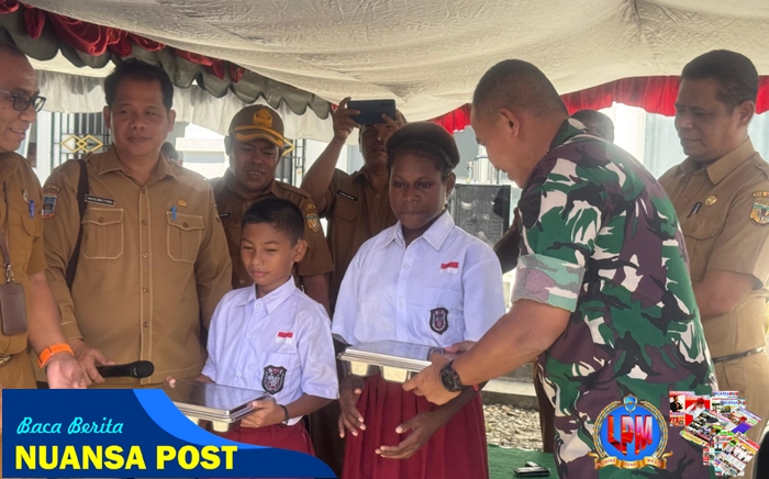 Komandan Kodim 1710/Mimika, Letkol Inf M. Slamet Wijaya, S.Sos., M.Han., M.A., menghadiri Launching Program Makan Bergizi Gratis yang diselenggarakan di SD Inpres Nawaripi, Jl. Nawaripi, Kec. Inauga, Distrik Wania, Kab. Mimika, Selasa (29/7/2025).