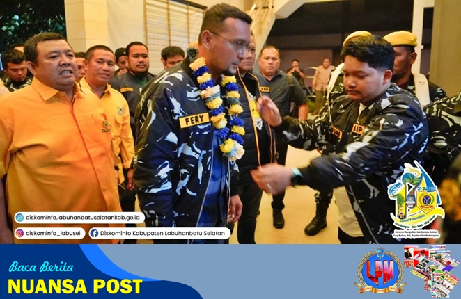 Bupati Labuhanbatu Selatan (Labusel), Fery Sahputra Simatupang menghadiri pelantikan pengurus Dewan Pimpinan Daerah (DPD) Angkatan Muda Pembaharuan Indonesia (AMPI) Kabupaten Labuhanbatu Selatan, yang digelar di Convention Hall Grandsuma Bloksongo, Sabtu (26/7/2025).