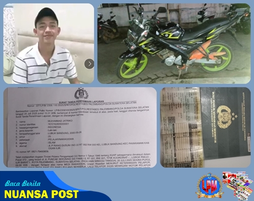 Karena melarikan motor temannya, Medi Romadhan pria asal Jl Ki Gede Ing Suro, lorong Tangga Tanah Laut Tangga Buntung Palembang, dilaporkan ke polisi.