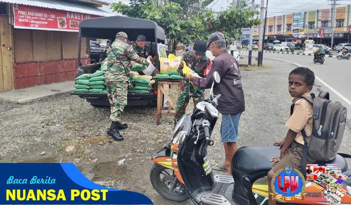 Timika – Wujud bakti nyata jelang peringatan HUT ke-80 TNI dalam membantu menstabilkan harga beras, Kodim 1710/Mimika melalui Koramil jajaran bekerjasama dengan Perum Bulog terus melaksanakan penjualan beras SPHP untuk warga Mimika, Sabtu (27/09/2025).