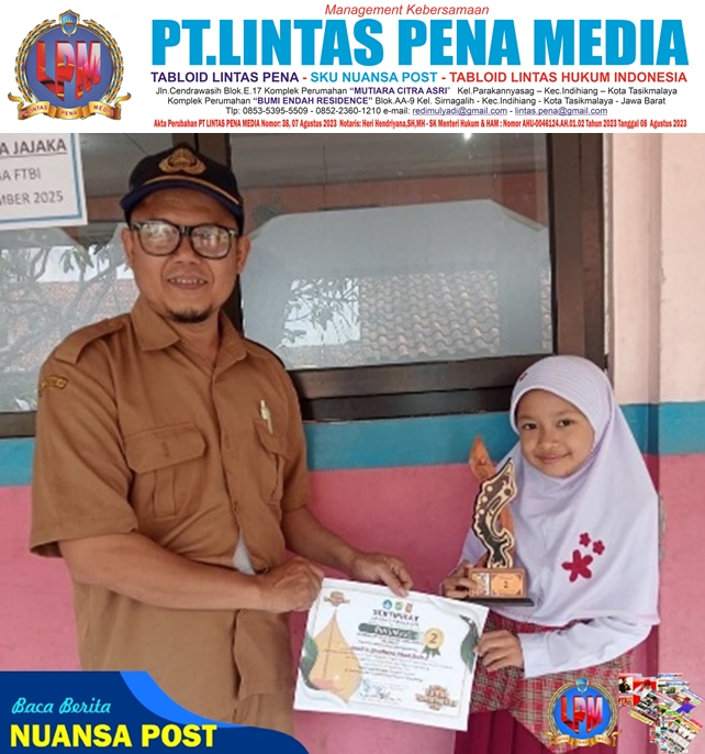Itulah yang telah disampaikan oleh Kepala SD Negeri 1 Sukasenang Kabupaten Tasikmalaya – Asep Abdul Mutolib, S.Pd.. ketika ditemui oleh Wartawan Nuansa Post di ruang kerjanya, yang didampingi oleh beberapa siswa/siswi-nya yang telah berhasil meraih juara. Semoga ke depan lebih sukses lagi. Aamiin. (MUKHLAS, DIP.)