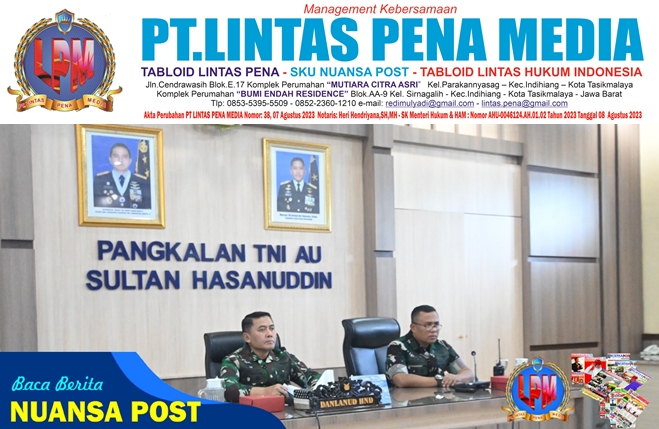Danlanud Sultan Hasanuddin Marsekal Pertama TNI Arifaini Nur Dwiyanto, M.Han., mengikuti Rapat Koordinasi Lintas Instansi Jelang Pemberlakuan UU Pengelolaan Ruang Udara (PRU) secara online di Ruang Rapat Mako Lanud Sultan Hasanuddin, Makassar, Jumat (31/10/2025).