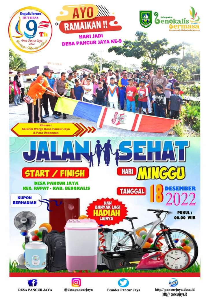 Bengkalis,NUANSA POST—Pemerintah Desa Pancur Jaya, Kecamatan Rupat, merayakan ulang tahun ke-10 pada 12 Desember 2023 dengan penuh kegembiraan. Acara perayaan diawali dengan kegiatan jalan santai yang melibatkan masyarakat dan tamu undangan. Pj Kepala Desa, Dr. Nelya Sasmita, turut serta dalam kegiatan ini, dimana pemenang jalan santai mendapatkan hadiah yang diundi.