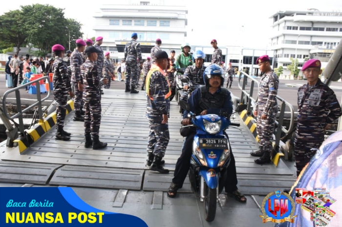 [ JAKARTA ] — Dalam rangka mendukung kelancaran arus balik Lebaran 1446 H/2025 M, TNI AL dalam hal ini Komandan Pangkalan Utama TNI AL (Danlantamal) V Surabaya, Laksma TNI Dr. Arya Delano, S.E., M.Pd., M.Han., melepas pemudik gratis dengan Kapal Perang Republik Indonesia (KRI) Banjarmasin-592 di Dermaga Madura Koarmada II, Ujung Surabaya. Sabtu (05/04/2025).