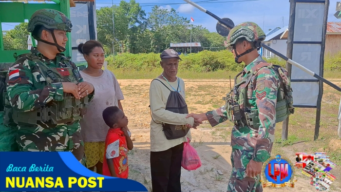Pos Aroba Satgas Pamtas RI-PNG Yonif 642/Kps Wilayah Papua Barat yang dipimpin langsung oleh Danpos Satgas Letda Inf Yudi melaksanakan kegiatan bakti sosial berupa membantu masyarakat dalam memberikan Sembako di Kampung Aroba, Distrik Aroba.