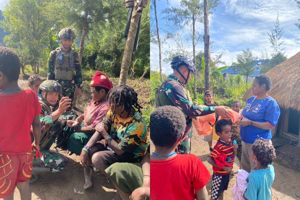 Kegiatan ini dihadiri oleh sejumlah personel Satgas dan Kodim yang turun langsung berinteraksi dengan warga. Selain menyerahkan bantuan berupa sarana penggalangan seperti bahan pokok, alat kebersihan, dan perlengkapan sekolah, tim medis Satgas juga memeriksa kesehatan warga secara cuma-cuma.