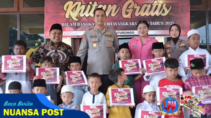 Khitan gratis bagi anak yatim dan piatu sebagai wujud syukur menyongsong Hari Bhayangkara ke-79 ini, lanjut Kapolres Rezi, dilaksanakan di Gedung Bhayangkara Polres Situbondo Polda Jatim.