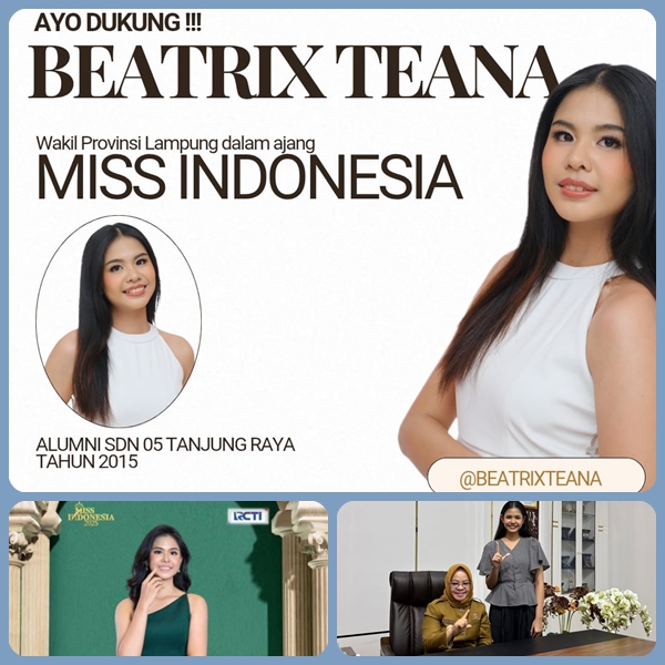 “Dukungan semua pihak saat berpengaruh untuk memupuk semangat ananda Beatrik dalam mencapai keberhasilan mewakili Provinsi Lampung sebagai Finalis di ajang Pemilihan Miss Indonesia ,”harapnya.