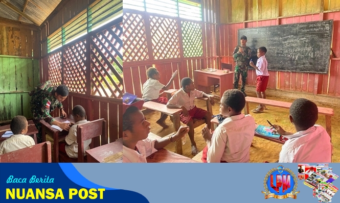Suasana berbeda tampak di SD Inpres Ican, salah satu sekolah dasar di wilayah perbatasan RI–PNG, Senin (4/8/2025). Personel Satgas Yonif 126/Kalacakti Pos Ican turun langsung menjadi guru sehari, mengajar para siswa dengan penuh semangat dan kepedulian.