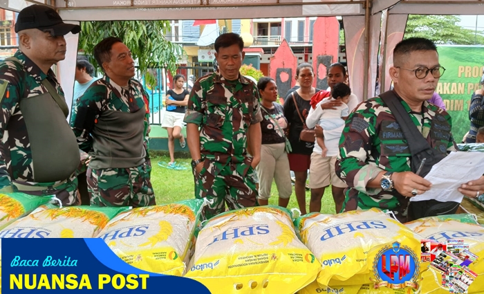 Di lapangan Koramil 1710-02/Timika, Jl. Yos Sudarso, Distrik Mimika Baru, Kabupaten Mimika, Kodim 1710/Mimika menggelar acara gerakan pangan murah, Selasa (12/08/2025). Kegiatan tersebut dipimpin langsung oleh Dandim 1710/Mimika, Letkol Inf M. Slamet Wijaya, S.Sos., M.Han., M.A. yang bertujuan untuk menjaga stabilitas pasokan dan harga pangan.