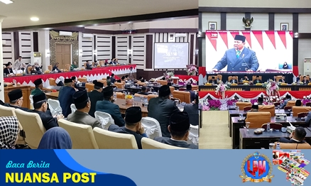 Rapat mendengarkan pidato kenegaraan Presiden RI dalam rangka HUT RI ke-80 tahun 2025 yang diselenggarakan di gedung paripurna Dewan Perwakilan Rakyat Daerah (DPRD) Kabupaten OKI berlangsung khidmat, Jumat (15/8/2025).