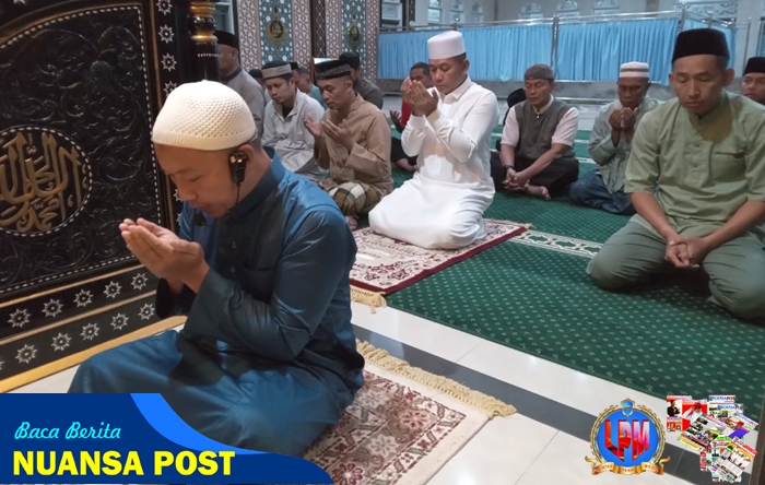 Lanud Sultan Hasanuddin menggelar kegiatan doa bersama yang diawali dengan pelaksanaan Sholat Subuh berjamaah di Masjid Nurussamawat Lanud Sultan Hasanuddin, Makassar, Minggu (31/8/2025).