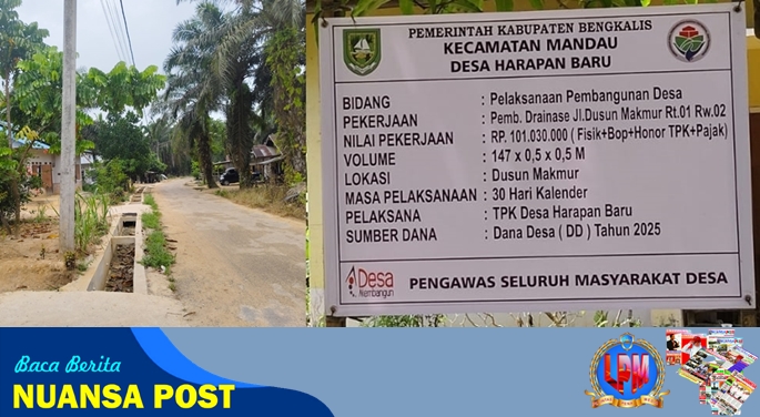 Kepala Desa Harapan Baru Tarmin menambahkan, “Kami akan terus berupaya meningkatkan pembangunan infrastruktur desa agar semakin nyaman dan aman bagi seluruh warga. Pembangunan ini merupakan bagian dari komitmen kami untuk memanfaatkan anggaran Dana desa secara tepat guna dan memberikan dampak positif bagi masyarakat.”( RENTA )****
