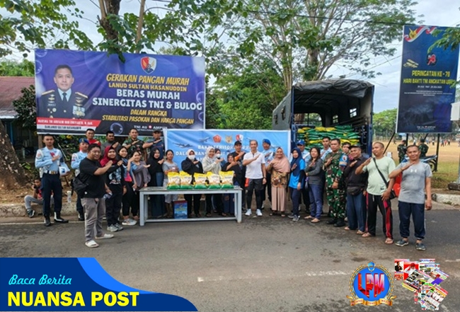 Dalam rangka mendukung program pemerintah menjaga stabilitas pangan sekaligus meringankan beban masyarakat, Lanud Sultan Hasanuddin bersinergi dengan Perum Bulog menggelar Gerakan Pangan Murah di sela kegiatan Car Free Day yang berlangsung di Lapangan Angkasa Lanud Sultan Hasanuddin, Minggu (14/9/2025).
