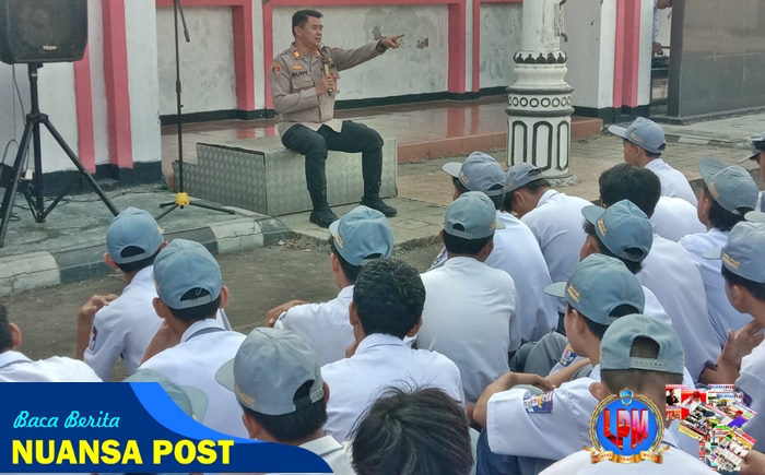 Kapolsek Jatiwangi, AKP Rudy Djunardi memberikan himbauan kepada siswadi/i SMK PGRl Jatiwangi dalam Rangka Pembinaan untuk mencegah kenakalan remaja dan tindakan kriminalitas di kalangan pelajar. Senin (22/9/2025).