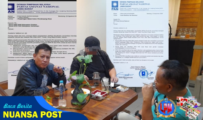 Kini sedang ramai atas beredar di kalangan masyarakat khususnya Cirebon dan Indramayu juga di medsos perihal surat bernomor: PAN/10/A/K-S/070/VIII/2025 tertanggal 29 Agustus 2025 perihal Penjaringan Bakal Calon Pendamping Desa yang ditujukan kepada Ketua DPD PAN Kabupaten Cirebon dan Ketua DPD PAN Indramayu.