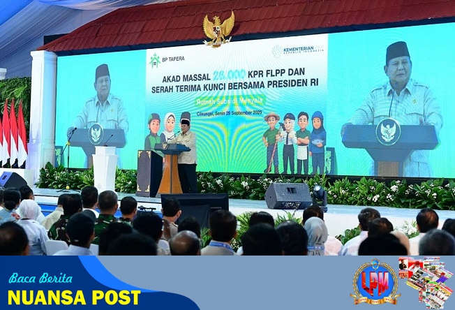 KABUPATEN BOGOR—- Presiden Prabowo Subianto menegaskan komitmen pemerintahannya untuk menghadirkan rumah layak huni bagi rakyat kecil sebagai bagian dari transformasi menuju Indonesia yang lebih sejahtera. Hal tersebut disampaikan Kepala Negara dalam sambutannya saat meresmikan akad massal 26 ribu Kredit Pemilikan Rumah Fasilitas Likuiditas Pembiayaan Perumahan (KPR FLPP) sekaligus serah terima kunci rumah yang dipusatkan di Pesona Kahuripan 10, Cileungsi, Kabupaten Bogor, pada Senin, 29 September 2025.