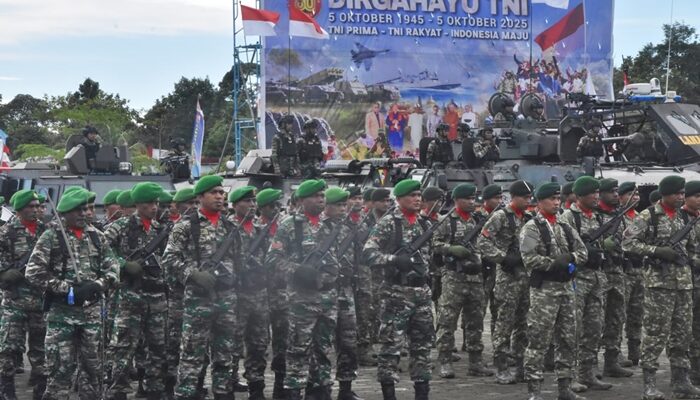 Bertempat di Lapangan Apel Kantor Pusat Pemerintahan Kab. Mimika, Jl. Cenderawasih, Kel. Karang Senang, Sp.3, Distrik Kuala Kencana, Kodim 1710/Mimika bersama satuan TNI se-Garnisun Timika menggelar upacara peringatan Hari Ulang Tahun (HUT) ke-80 Tentara Nasional Indonesia (TNI) dengan Tema “TNI Prima, TNI Rakyat, Indonesia Maju” dan Inspektur Upacara Letkol Inf Indra Luthfi Wibisono, S.E, Danyonif 754/ENK, Minggu (05/10/2025).