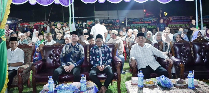 Bupati Labuhanbatu Selatan Fery Sahputra Simatupang menghadiri peringatan Maulid akbar Nabi Muhammad SAW 1447 H yang dilaksanakan oleh dua dusun di Desa Asam Jawa kecamatan Torgamba dilapangan bola kaki dusun Asam Jawa Barat, Rabu ( 8/10/2025 ).