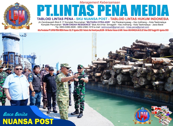 Kepala Staf Umum (Kasum) TNI Letjen TNI Richard Tampubolon meninjau langsung penindakan Satuan Tugas Penertiban Kawasan Hutan (Satgas PKH) yang berhasil mengamankan 4.610 meter kubik kayu bulat ilegal dan satu tongkang di Pelabuhan Gresik, Jawa Timur, Selasa (14/10/2025).