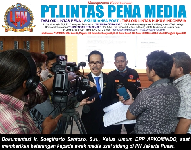 JAKARTA—– Dalam langkah berani untuk membela integritas lembaga peradilan, Ir. Soegiharto Santoso, S.H., selaku Ketua Umum DPP APKOMINDO secara resmi melaporkan dugaan praktik rekayasa hukum sistematis, penggunaan dokumen palsu, dan maladministrasi peradilan yang telah mencemari setidaknya sembilan (9) putusan pengadilan dari tingkat pertama hingga Peninjauan Kembali (PK). Laporan terpadu ini disampaikan secara serempak kepada tiga pilar pengawas peradilan: Ketua Mahkamah Agung RI, Ketua Komisi Yudisial RI, dan Kepala Badan Pengawasan MA RI.