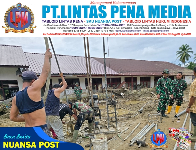 TNI melalui Kodim 0212/Tapanuli Utara bersama masyarakat melaksanakan pembangunan sumur bor guna memenuhi kebutuhan air bersih bagi warga terdampak banjir di Desa Huta Godang, Kecamatan Batang Toru, Kabupaten Tapanuli Selatan, Sumatera Utara, Minggu (14/12/2025).