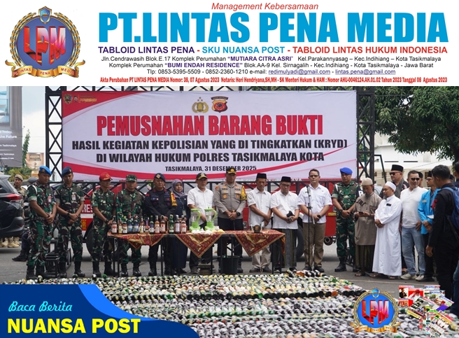 Menjelang malam pergantian tahun, Polres Tasikmalaya Kota mengambil langkah tegas dengan memusnahkan ribuan barang bukti hasil Operasi Kegiatan Rutin yang Ditingkatkan (KRYD) dan Operasi Pekat. Kegiatan pemusnahan berlangsung di Taman Kota Tasikmalaya, Rabu (31/12/2025), dan disaksikan unsur Forkopimda serta tokoh masyarakat.