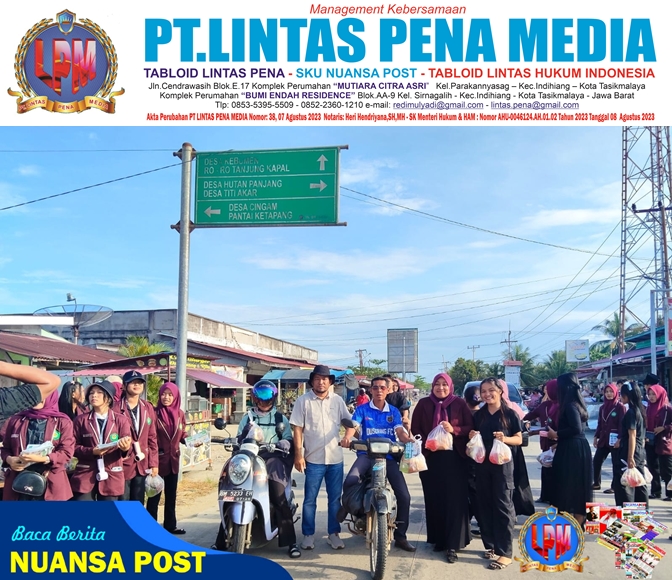 Kepala SMAS Kurnia Jaya  Tengku Mulkan, S.IP,M.IP atonsiasi  berbagi takjil di Simpang Empat Desa Pangkalan Nyirih  Kecamatan Rupat Kabupaten Bengkalis.  Kegiatan berbagi takjil gratis kepada warga sekitar sekolahan yang melintas Jl Hasem Ar dan Jalan Pelajarm hari Sabtu sore  (14/3/2026).